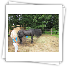 Depuis toute petite, je rêvais d'avoir mon cheval, Depuis des années, je regardais le Frison en me disant que peut être un jour j'aurais le mien. La vie m'a fait un grand cadeau, Hessel a été mis sur ma route. Merci la vie!